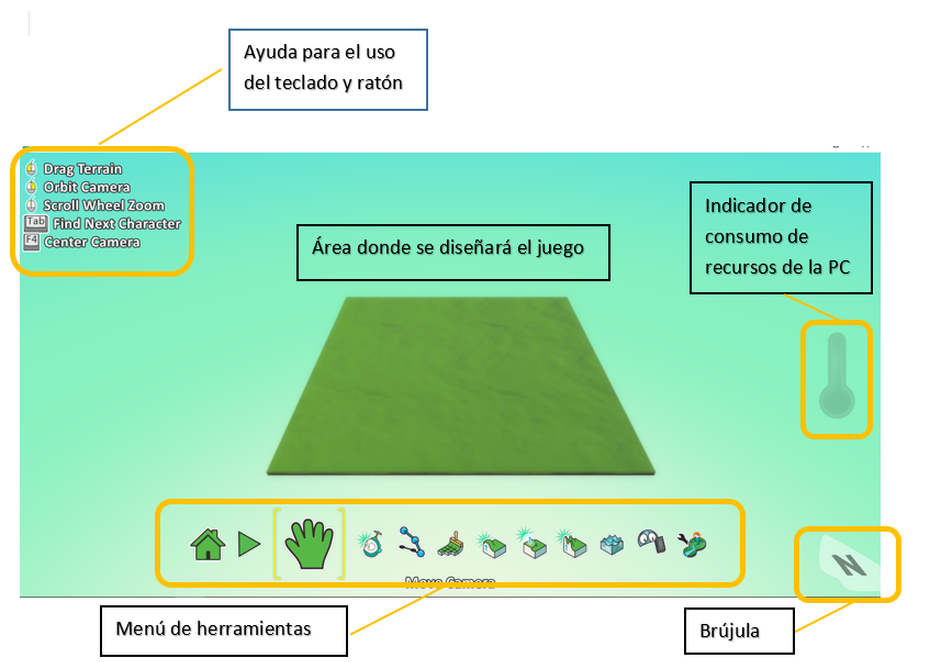 Una vez iniciado la aplicación, se visualizará la pantalla que contiene el Menú Principal de kodu.